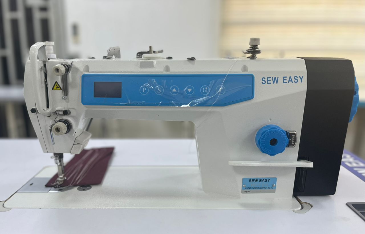 Single needle lock-stich sewing machine, with direct drive motor, instead of clutch motor.